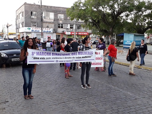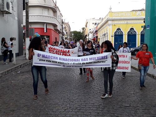 Jaguarão/Río Branco – Integrantes dos movimentos Mulheres de Fronteira – Jaguarão/Rio Branco, Coletivo Margaridas e demais apoiadores realizaram na quinta-feira 14 de março a 8ª Marcha Binacional das Mulheres.