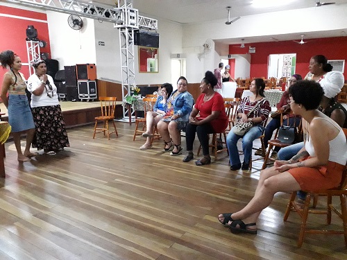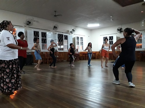 Na aula de samba, ministrada por Phamela, o conjunto de participantes – formado por mulheres – puderam aprender uma breve introdução de dança. Passos básicos foram reproduzidos pela professora, que há dez anos exerce atividade com dança.
