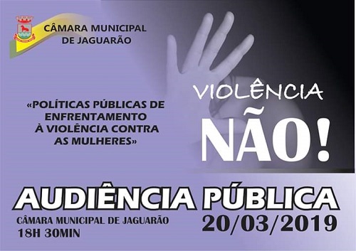 Jaguarão – A Câmara Municipal de Vereadores vai realizar na quarta-feira 20 de março uma audiência pública para tratar e discutir “políticas públicas de enfrentamento à violência contras as mulheres”. O evento está programado para começar às 18h30.