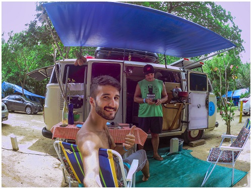 A Kombi em que João e Jordy viajam funciona como uma “casinha”, no dizer dos dois viajantes, “uma kombihome mesmo, temos tudo, cama, geladeira, fogão, armários, pia, placa solar que nos da energia suficiente 24hs por dia para luz, geladeira e todos equipamentos, e sim, cozinhamos nela sempre, assim economizamos muito”.