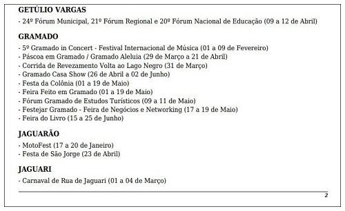 Além da Festa de São Jorge, apenas outro evento jaguarense consta do Calendário de Eventos Turísticos do Estado, em 2019: o MotoFest, realizado este ano entre 17 e 20 de janeiro.