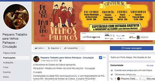 Pequeno Trabalho para Velhos Palhaços faz parte de um projeto realizado com recursos do Governo do Estado do Rio Grande do Sul, por meio do Pró-cultura RS e FAC – Fundo de Apoio à Cultura.