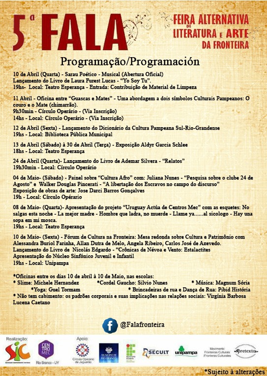 2 comentários sobre “Organização da 5ª Feira Alternativa de Literatura e Arte da Fronteira divulga programação; confira a sua íntegra”