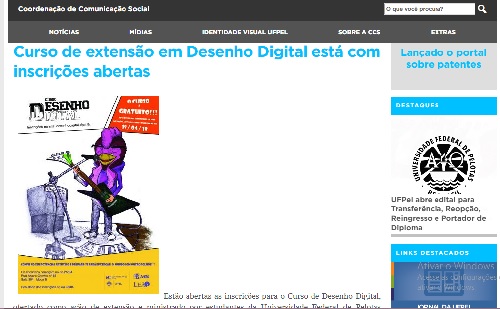 Pelotas – Estudantes da Universidade Federal de Pelotas (UFPel) ministrarão gratuitamente à comunidade um curso de Desenho Digital. As inscrições devem ser feitas até o dia 19 de abril, exclusivamente através do preenchimento de formulário no site da instituição de ensino.