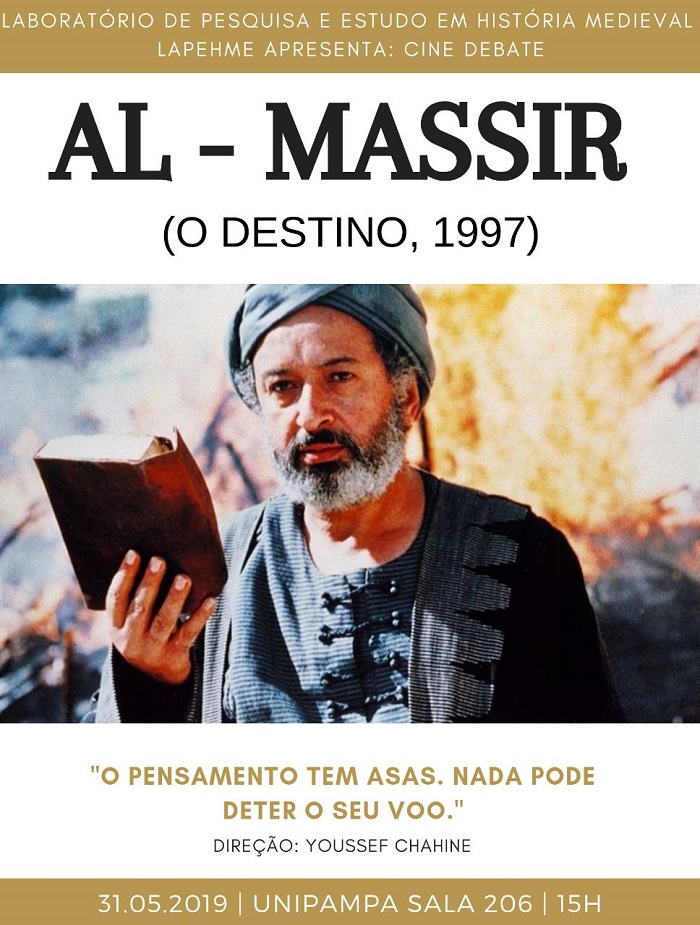 Jaguarão – O Projeto de Pesquisa e Estudo em História Medieval do campus local da Unipampa (Universidade Federal do Pampa) exibe às 15 horas da sexta-feira 31 de maio o filme egípcio Al-Massir (O destino, de 1997).