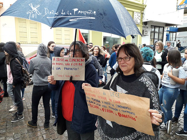 Com um microfone aberto, os participantes foram convidados a discursar. “Estamos nas ruas em nome da Educação, em nome dos nossos direitos”, disse Guinter Tlaija Leipnitz, professor do curso de História da Unipampa. “A luta não deve ficar apenas para dentro das instituições de ensino”, defendeu Lauro Borges, professor de Sociologia do curso de Edificações do IFSul.