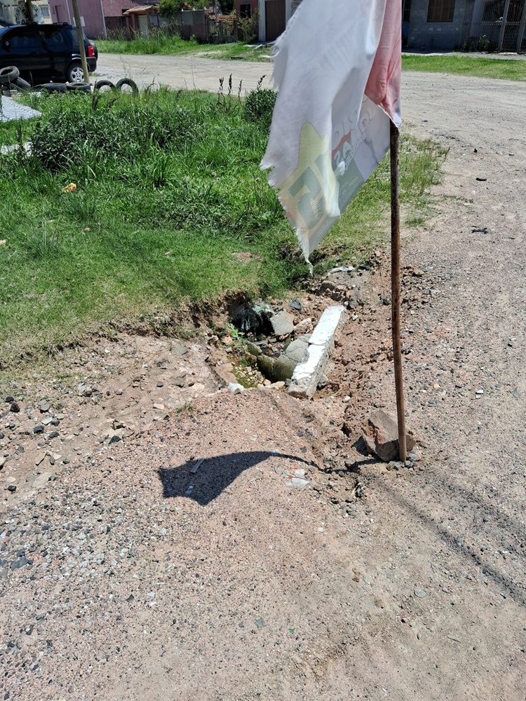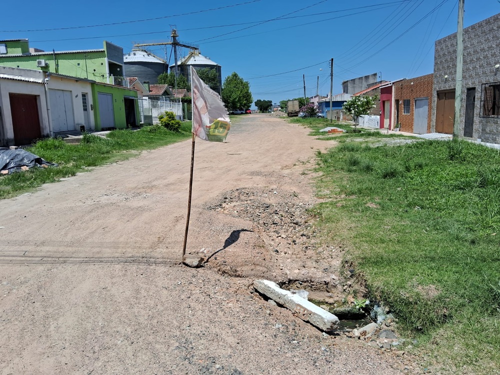 Jaguarão – Moradores do município decidiram chamar a atenção para um buraco perigoso em uma rua do centro da cidade. Para isso, fincaram uma bandeira dentro de um buraco, localizado na esquina das ruas Marechal Floriano Peixoto e Sátiro Agenor Garcia. O gesto é um protesto e um aviso, destacando um problema que, segundo relatos, existe há pelo menos um ano.