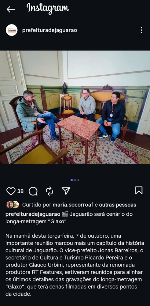 Jaguarão – A Cidade Heroica vai ganhar destaque nacional e internacional com as gravações do longa-metragem “Glaxo”. Na manhã da terça-feira 7 de outubro, o vice-prefeito Jonas Barreiros, o secretário de Cultura e Turismo Ricardo Pereira e o produtor Glauco Urbim, da renomada produtora RT Features, se reuniram para alinhar os últimos detalhes das filmagens.
