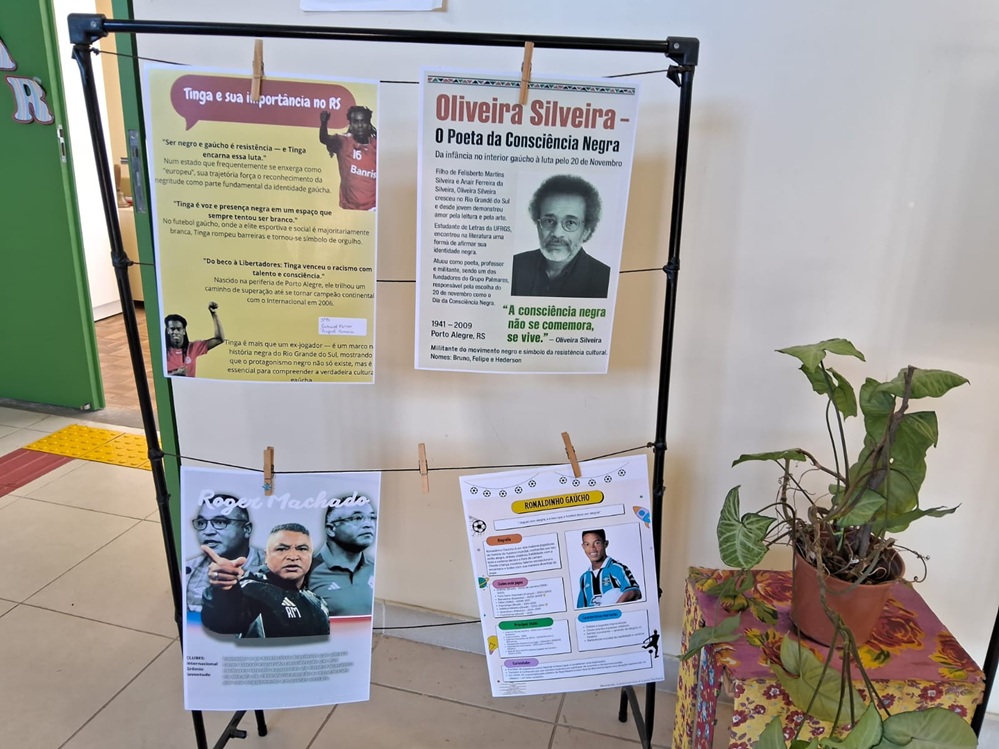 Durante a atividade, os estudantes se reuniram em grupos e escolheram figuras negras do Rio Grande do Sul para homenagear. Entre os nomes lembrados estavam escritores, atletas e lideranças políticas, como Nina Fola, Oliveira Silveira, Laura Sito, Ronaldinho Gaúcho, Tinga e Roger Machado. Essas personalidades representam resistência, talento e contribuição para o estado e para a fronteira sul.